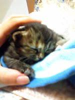 拾った当日、子猫を見に実家に帰ったのですが、ホントに小さくて歯も生えてなくて耳もまだ開いてなかったんです。