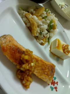 魚料理は相変わらず「切り身の鮭」、焼く!以上!です。