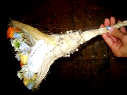 先端部分に大きな貝を使っていて、周りのお花達も鮮やかな夏仕様