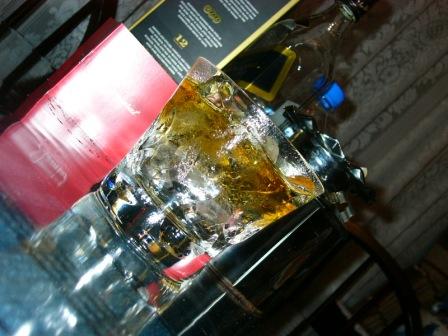 ミネラルウォーターの上に静かに注いだスコッチウィスキー。敢えてステア(かくはん)せずコントラストを目で楽しんだ後ゆっくりと喉に流し込みます。