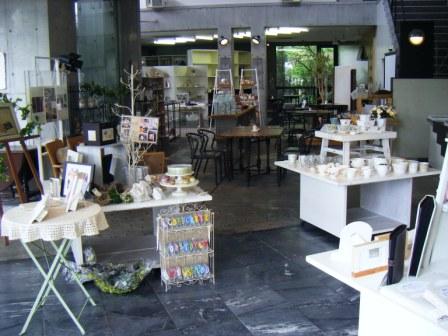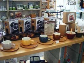 奥にはカフェスペースもあり、ゆったりお茶しながらアイテムを眺められる