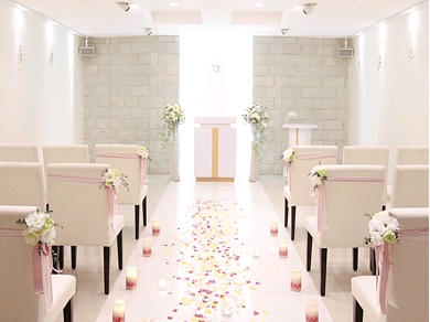 真っ白でかわいいチャペルが魅力のプリエージュさん。