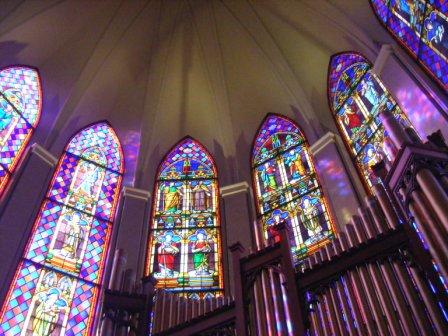 差し込む光がバージンロードに映って、とっても綺麗でした