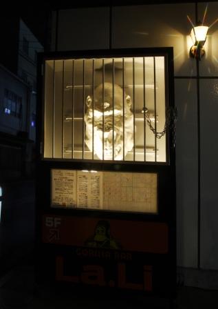 店の外にゴリラがぶら下がっている